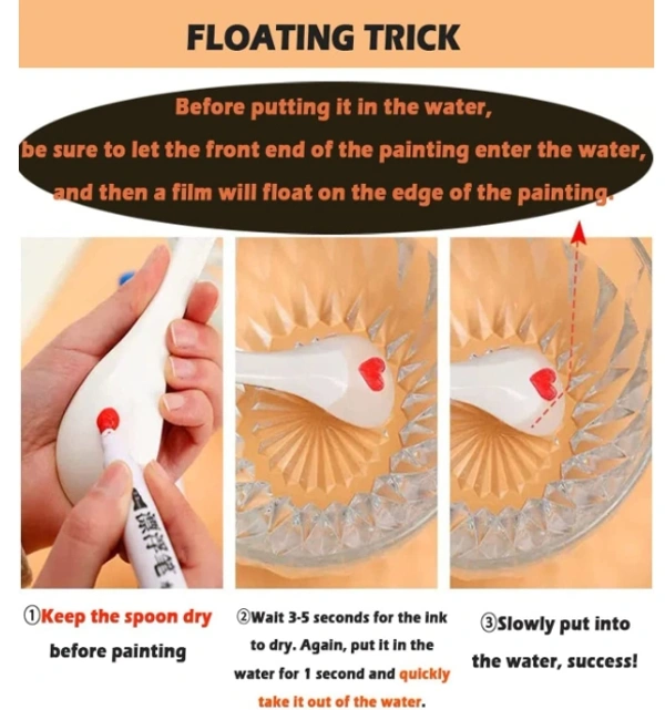Water painting will arouse children's curiosity. Use this floating whiteboard pen to paint on the ceramic spoon. When encountering water, the drawn pattern will float by itself, as if there is life, which is very interesting! Children can experience the joy of crafting! It's conducive to the children's sensory development. This is also a fun game for family and friends gatherings. Find Innocence together!