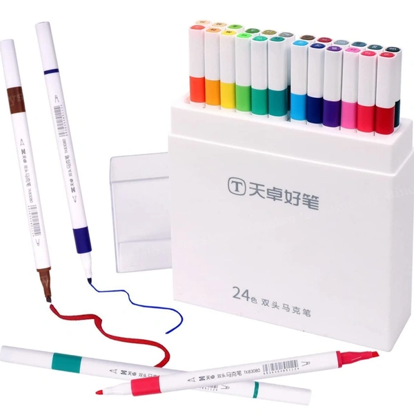 Color Markers Twin Tip – 24 Pcs Double Tip Markers for Artist, Sketch Alcohol Markers Set, Drawing Colouring Markers for Kids, Marker for White Board, Sketch Colour, Return Gift for Kids