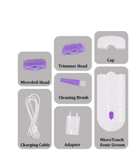 finishing touch utilizes a micro-oscillation trimmer under the smooth micro foil head to sweep away unwanted hair without pain or irritation