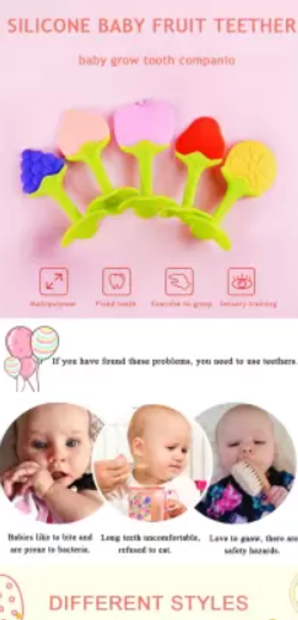 Baby Teething Crib Silicone Fruit Shaped Teether Nibbler Pacifier Teether (Multicolour)