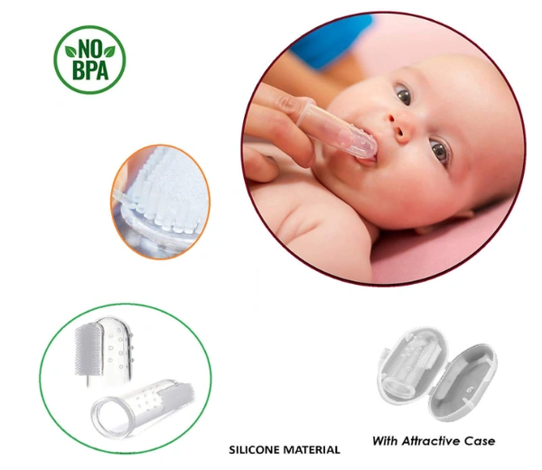 Silicone Finger Brush Tongue Cleaner for Baby Teething/Gums with case for Easy Cleaning, Massaging, and Soothing BPA Free Extra Safe and Oral Hygiene.