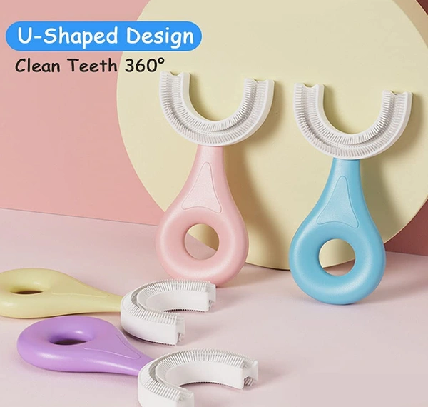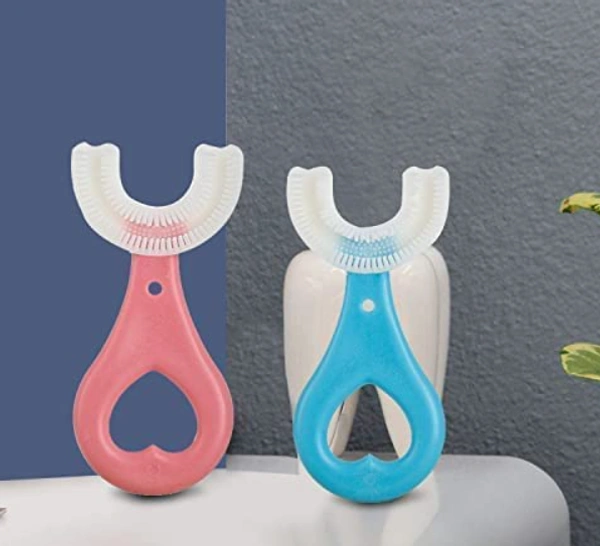 U Shaped Toothbrush for Kids Manual Whitening Toothbrush Silicone Brush Head for Kids Children Infant Toothbrush For 2-6 Years Mouth-Cleaning