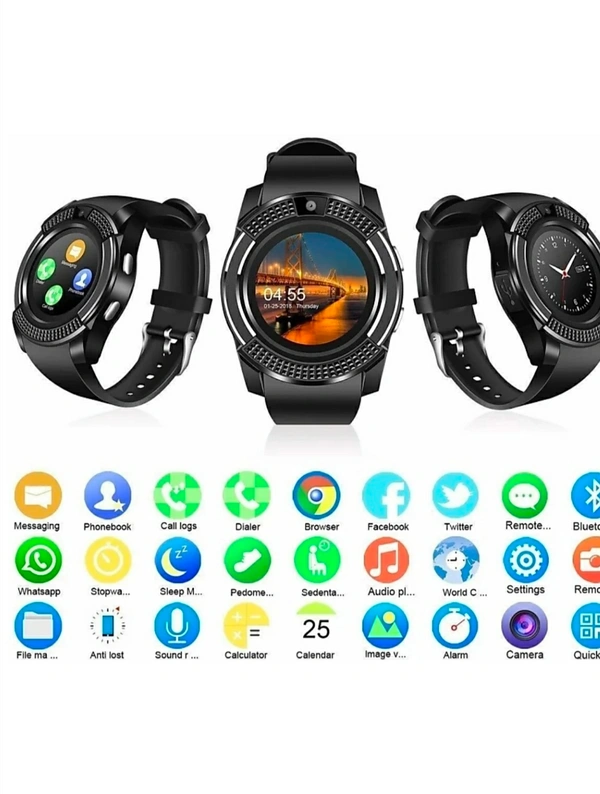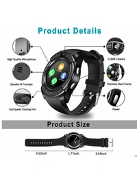 Smart Watch Touch Screen Smart Watch Compatible with All Mobile Phones with Camera, SIM, SD Card Slot Android and iOS Smartphones for Kids Girls Boys Men Women Black