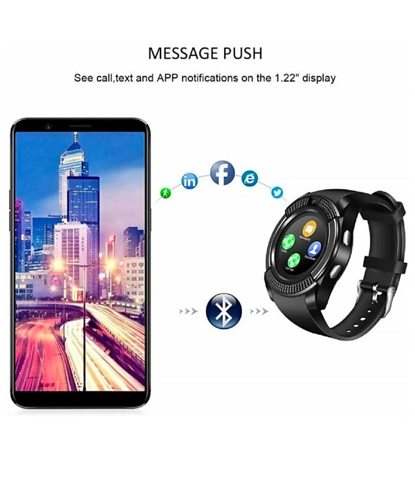 See Text, call and other APP notifications directly from your V8 smartwatch via Bluetooth connection to your smartphone and Bluetooth 4.0 Message Push, Sedentary Reminder, Pedometer, Sleep Monitoring Wristband for iOS/Android Phone